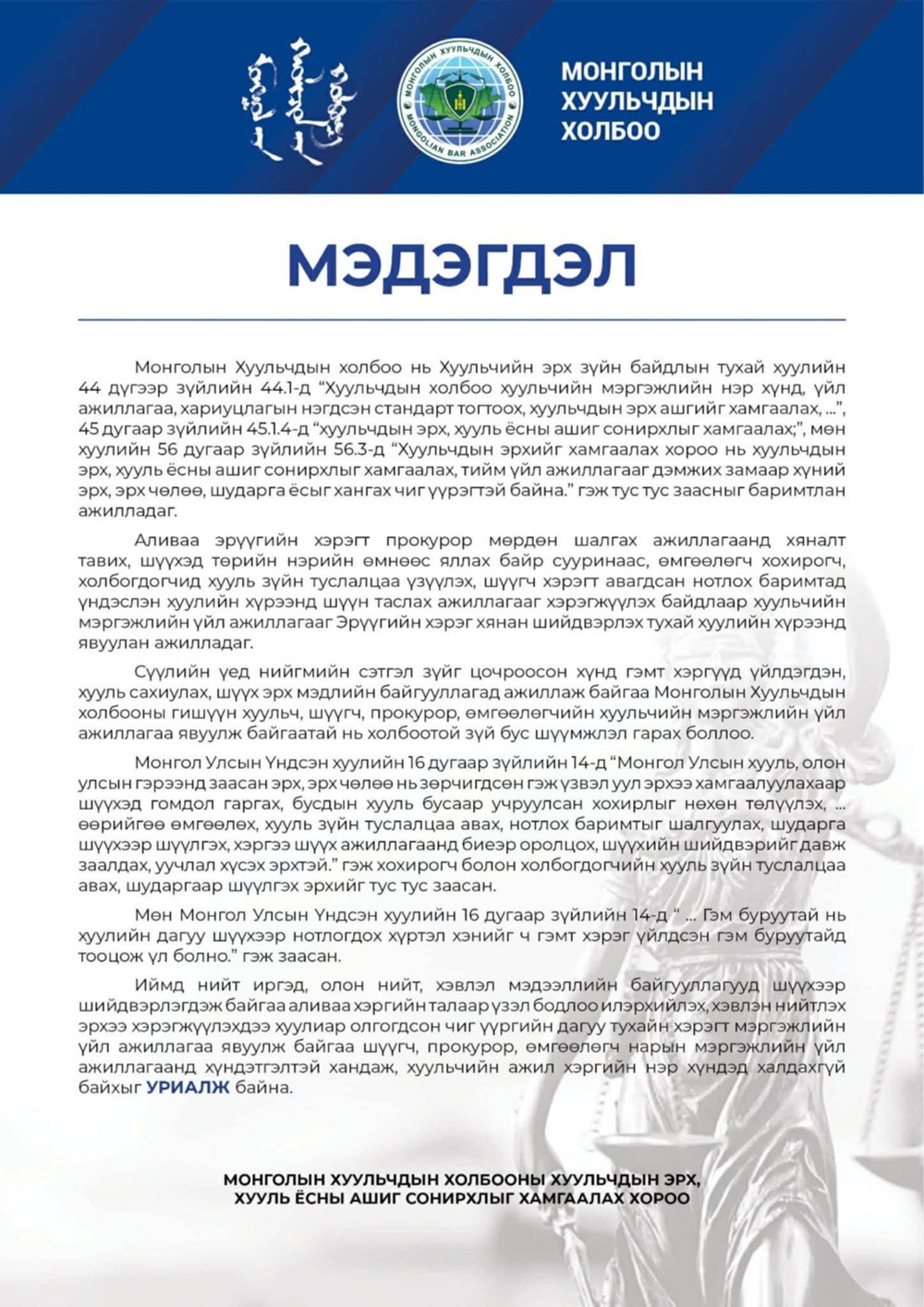 Монголын улсын хууль