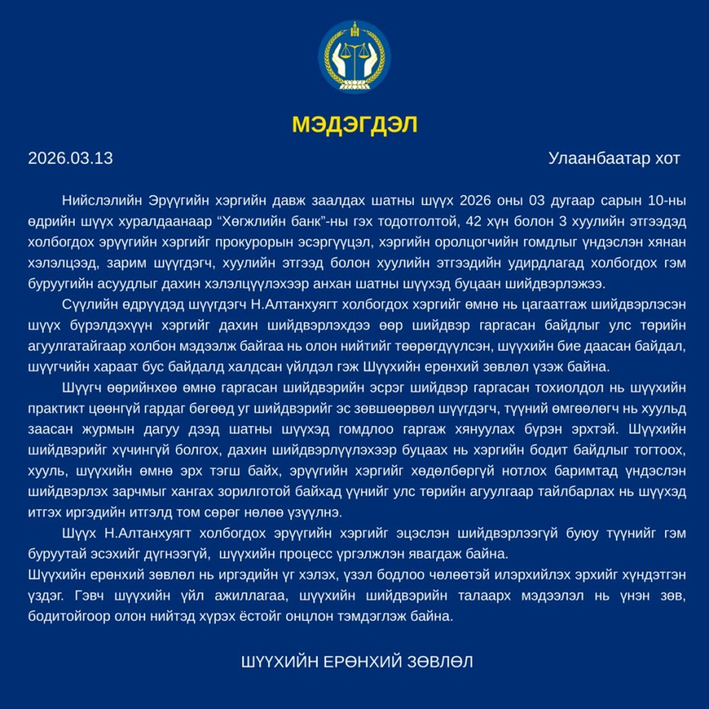 ШҮҮХИЙН ЕРӨНХИЙ ЗӨВЛӨЛИЙН МЭДЭГДЭЛ