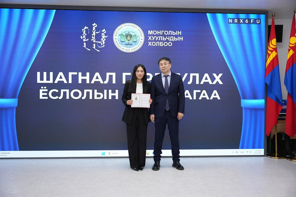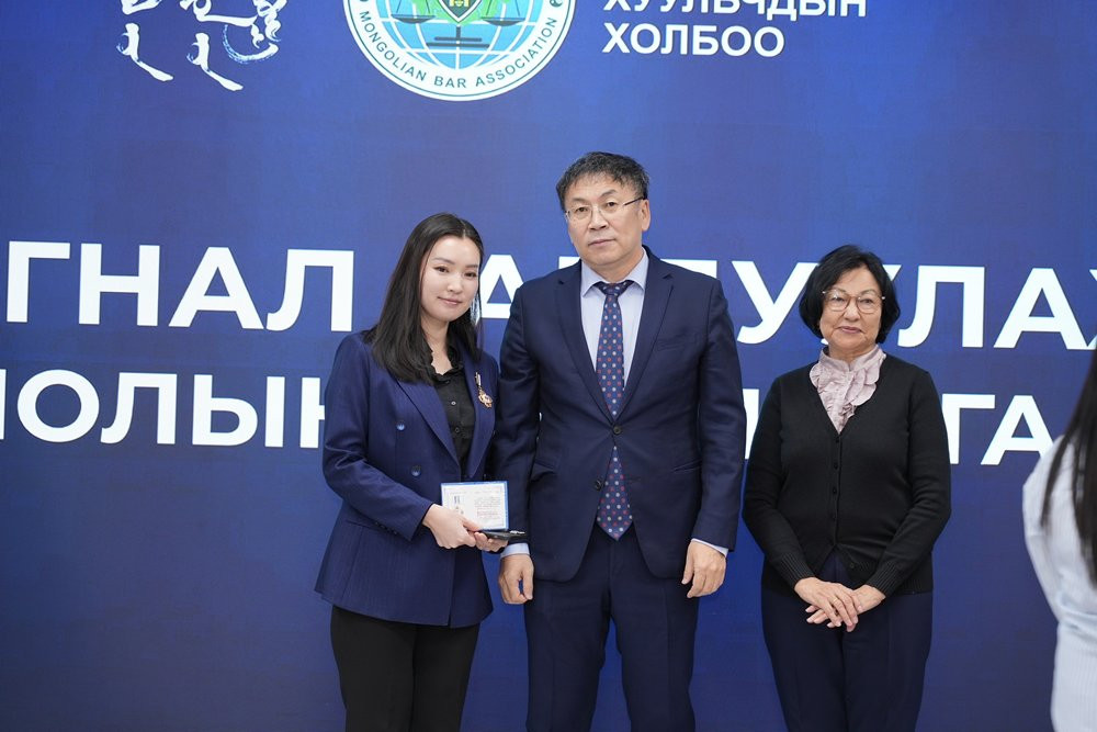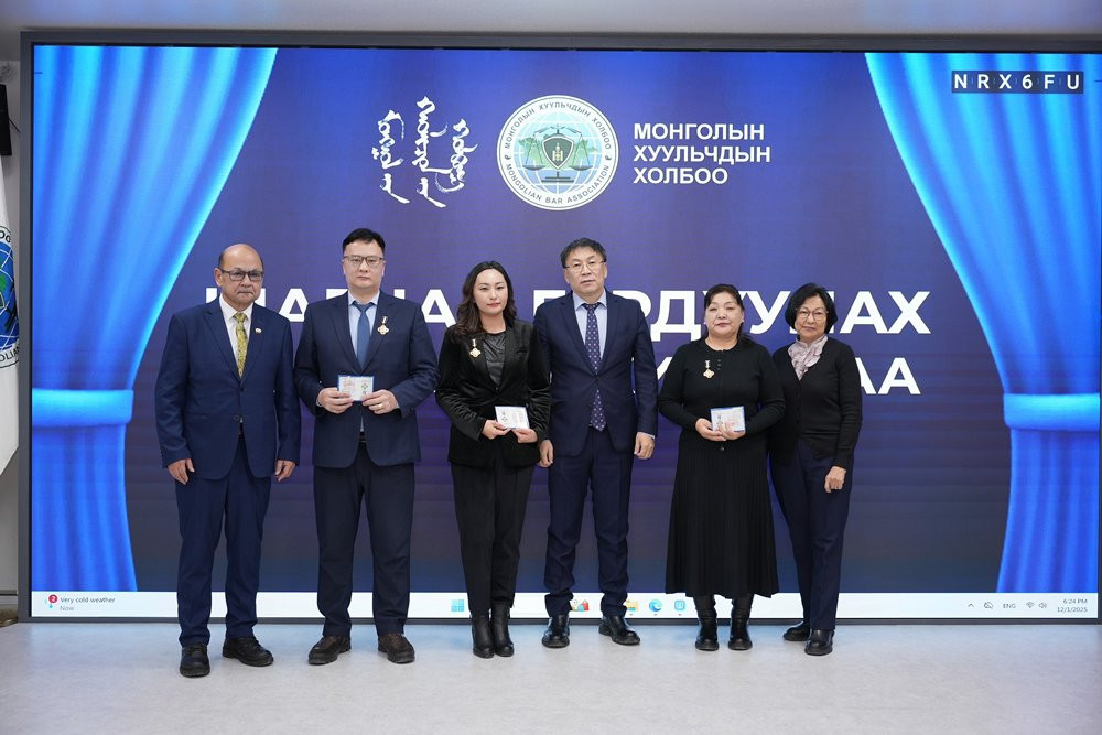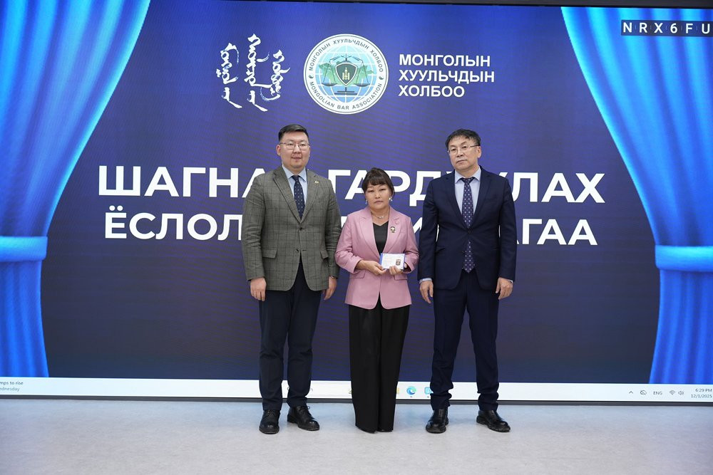Улс тунхагласны баярын өдрийг тохиолдуулан Монголын Хуульчдын холбооны хөгжилд үнэтэй хувь нэмэр оруулж, хууль зүйн салбарт үр бүтээлтэй ажиллаж байгаа зарим эрхмүүдийг Төрийн дээд шагнал, хууль зүйн салбарын шагнал, Нийслэлийн Засаг даргын нэрэмжит шагнал болон Холбооны Хүндэт тэмдгээр шагналаа. Шагналыг Монголын Хуульчдын холбооны Ерөнхийлөгч, хууль зүйн ухааны доктор П.Одгэрэл өчигдөр гардуулан өгч баяр хүргэсэн.