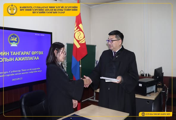 Монгол Улсын Ерөнхийлөгчийн 2025 оны 09 дүгээр сарын 18-ны өдрийн 144 дүгээр зарлигаар Баянзүрх, Сүхбаатар, Чингэлтэй дүүргийн Иргэний хэргийн анхан шатны тойргийн шүүхийн шүүгчийн албан тушаалд Лутбатын Болортуяаг томилж, шүүгчийн тангараг өргөх ёслолын ажиллагааг 2025 оны 09 дүгээр сарын 22-ны өдөр тус шүүхийн байранд зохион байгууллаа.
