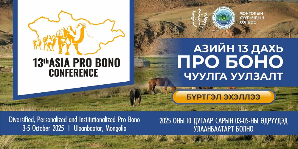 Энэхүү чуулга уулзалтад оролцох хуульчид https://www.mglbar.mn/asian/pro/bono/create холбоосоор орж бүртгүүлнэ үү.